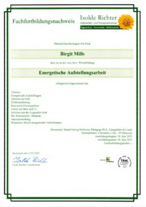 - Energetische Aufstellungsarbeit, Fachfortbildung bei Daniel Stoklossa (Isolde Richter Naturheilschule) 2025.